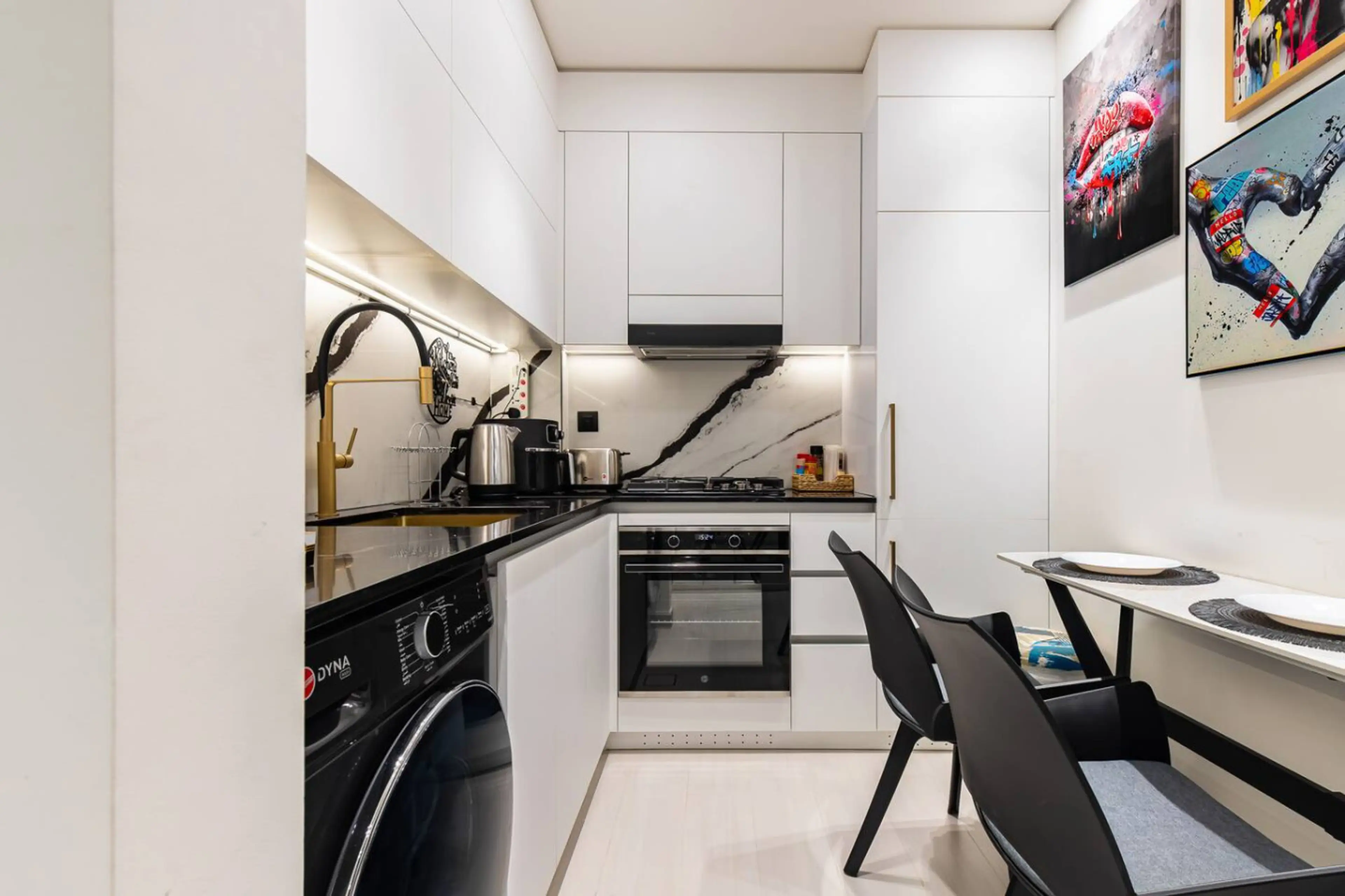 Enjoy a fully equipped studio combining edgy rock-inspired decor with contemporary luxury. Featuring wall art of stars and two hanging guitars, along with a stunning partial view of the Burj Khalifa, this space offers a unique blend of personality and comfort. Perfect for creative professionals, mu...